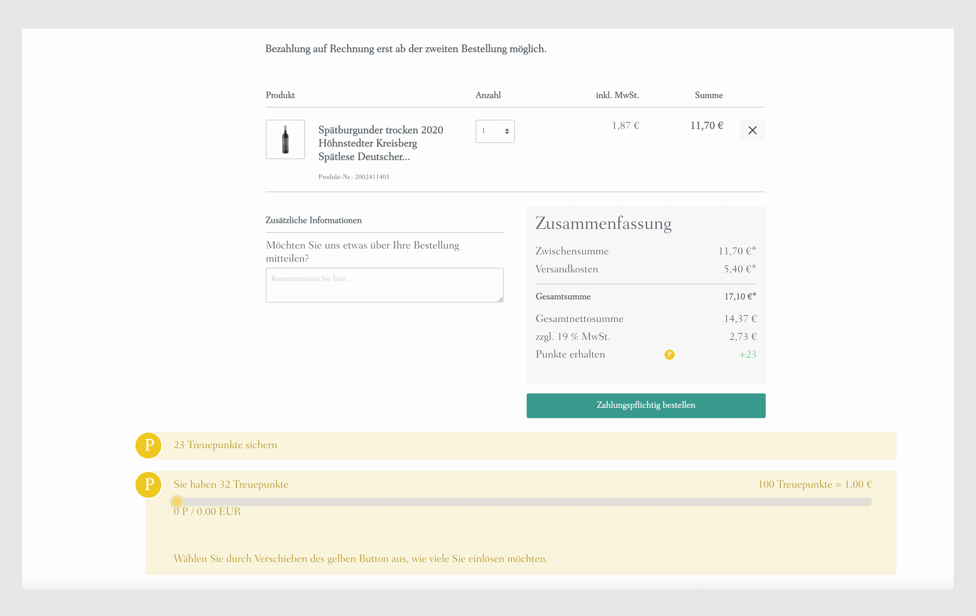 Ihre Treuepunkte sind nur bei Folgebestellungen einlösbar!