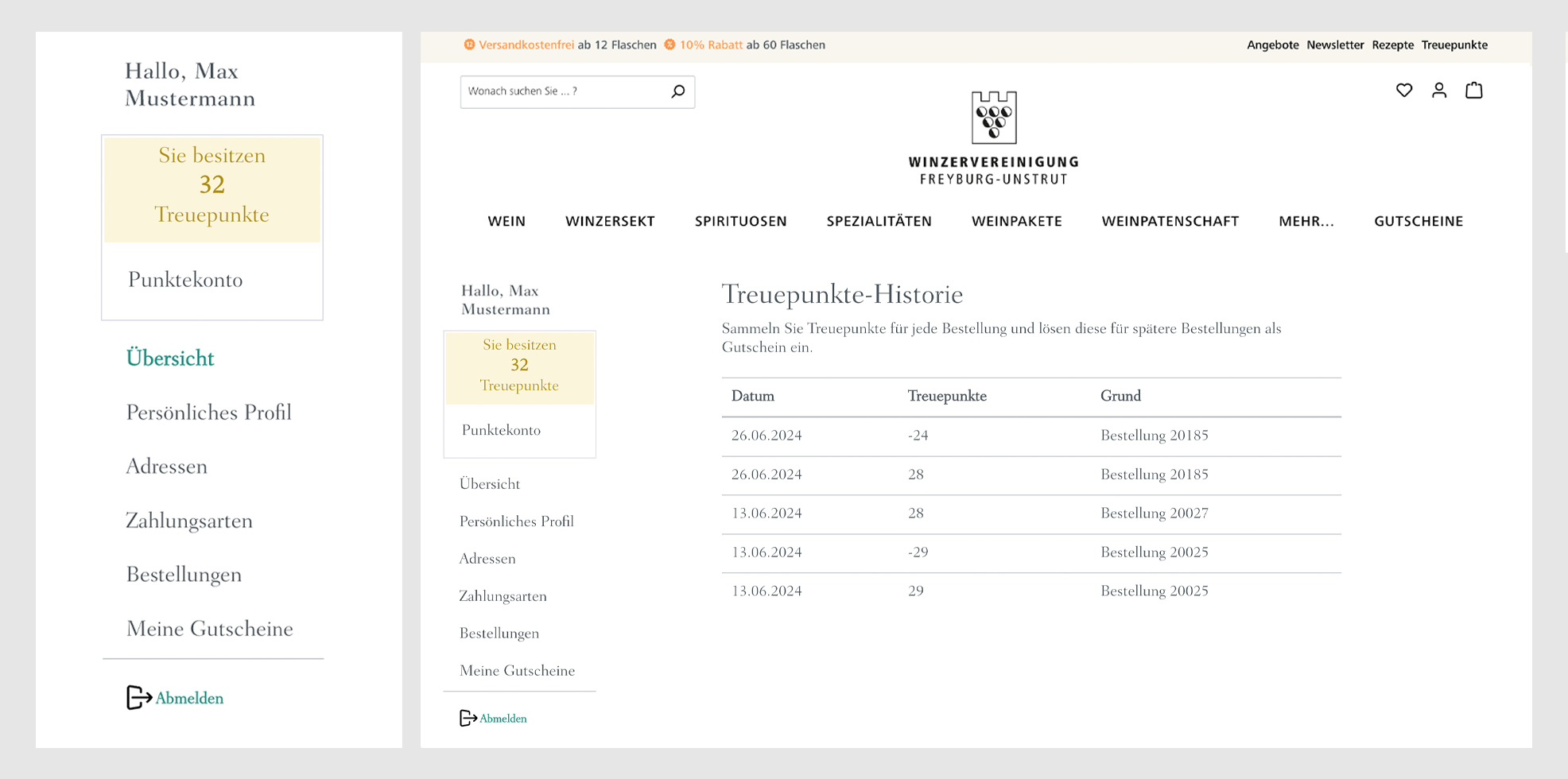und Weinpakete Treuepunkte!